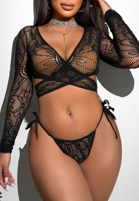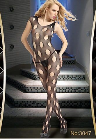 Black Mesh and Fishnet Open Crotch Bodystocking